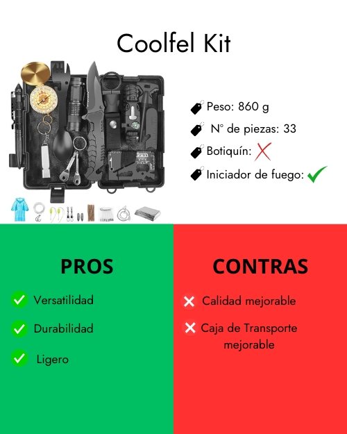 El Coolfel Kit de Supervivencia ofrece una amplia variedad de accesorios para situaciones de emergencia y actividades al aire libre.